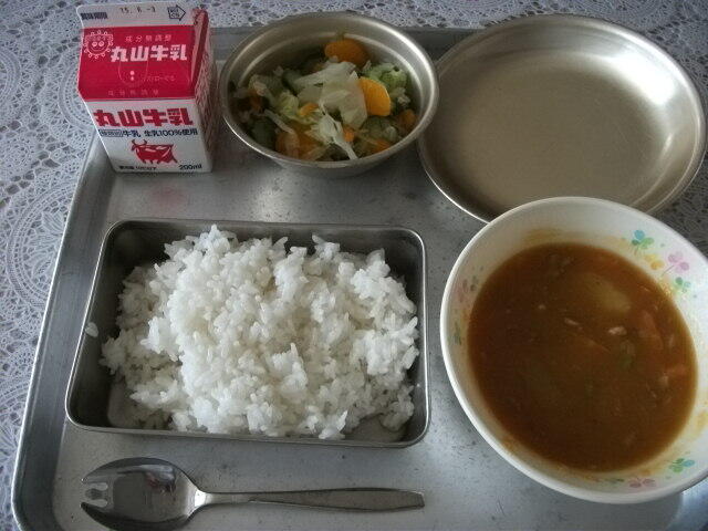 5月27日(水)献立:ごはん 牛乳 カレーライス みかんサラダ