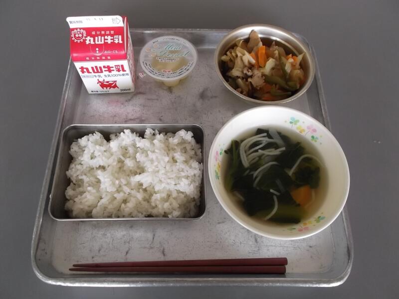 9月7日(月)献立:ごはん 牛乳 やきにくふう 魚そうめんじる りんごゼリー