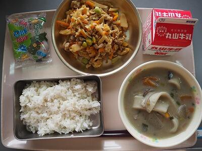 【たけのこごはん・牛乳・団子汁・柏餅】