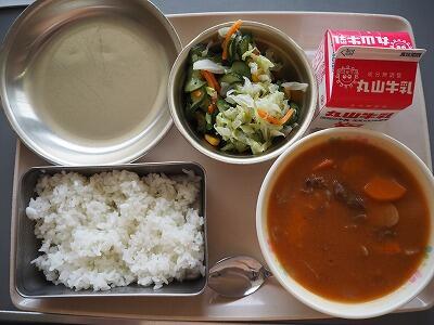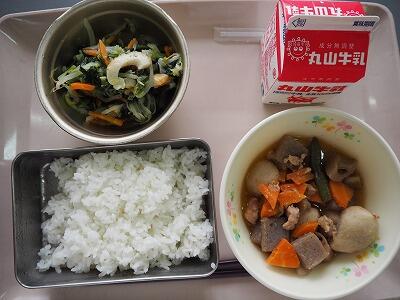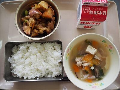 【ごはん・牛乳・鶏肉とさつまいもの揚げ煮・ちんげん菜スープ】