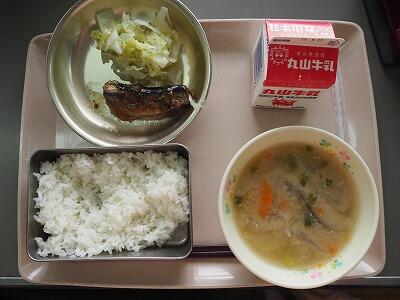 今日は、子どもたちが大好きな魚の給食です。魚のメニューも子どもたちには人気があり、「やった~!魚だ!」とうれしそうに食べていました。汁物には、れんこんや大根、里芋、人参などの根菜やごまがたくさん入り、食感も風味も楽しめる一品となりました。