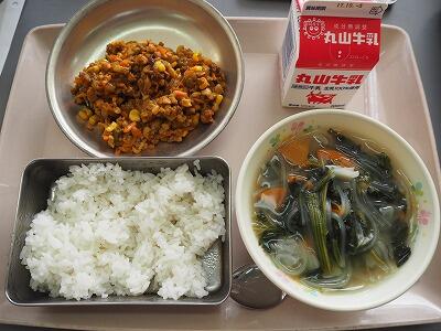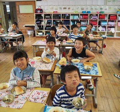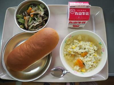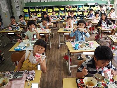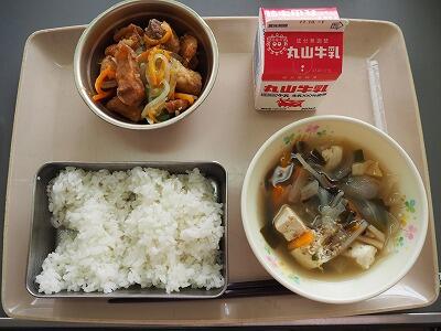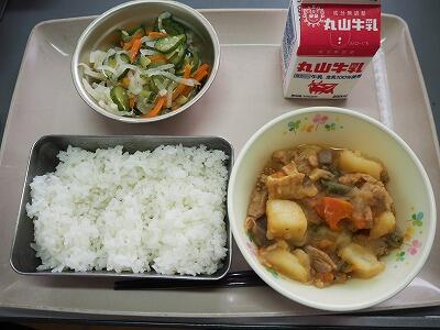 今日は、じゃがいもがたくさんの含め煮です。3時間目頃からいいにおいが学校中に広がり、1年生の子どもたちも、「いいにおいがする~!おなかすいた!」と給食時間を楽しみにしていました。