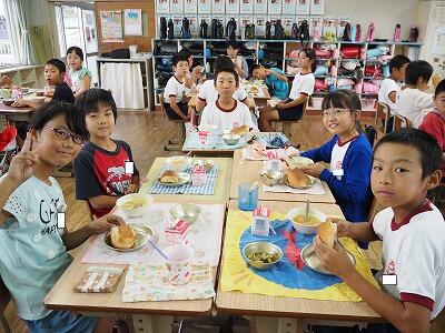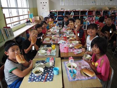 給食当番の子どもたちも今日のメニューに大喜びでした。