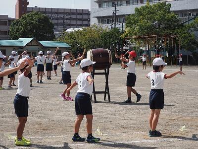 今日は、本番で使用するステージの上で太鼓を配置しての練習となり、運動会に向けての最終段階に入っているようでした。運動会に向けて引き続き頑張ってくださいね!楽しみにしています!