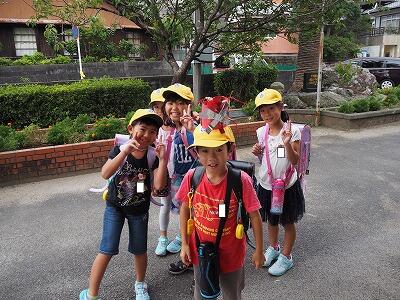 下校の様子です。今日もみんなにこにこ楽しそうに帰っていました。カメラを向けるとみんなバッチリいい笑顔でポーズを決めてくれました。運動会まであと5日、体調管理に気を付けて引き続き練習を頑張ってくださいね!