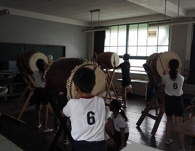 昼休みの様子です。ばんば太鼓の子どもたちと音楽クラブの子どもたちが今日も合同練習を行っていました。太鼓の音と子どもたちの歌声がよく合い、みんな一生懸命頑張っています。