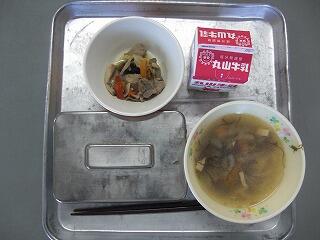 今日の献立は、「牛乳」「ご飯」「とりのからあげ」「ゆでブロッコリー」「すましじる」でした。