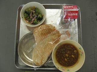 今日の献立は、ナン、牛乳、ドライカレー、ミックスサラダでした。