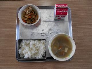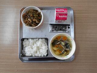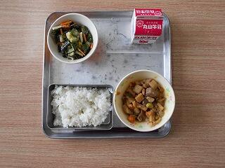 今日の献立は,ご飯、牛乳、筑前煮、酢みそあえです。