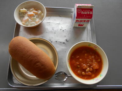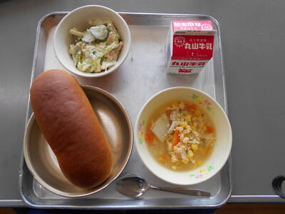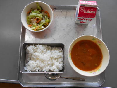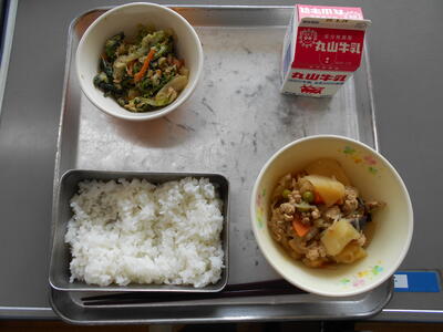 5月18日(木)、今日は、もやしについてのお話です。 細くて長くのびたもやしは、たいした栄養がないように思われがちですが、実は大違い。もやしは、ビタミンB1やB2やC、カルシウムを多く含みます。もやしには、ふつう私たちがもやしと呼んでいるブラックマッペもやし、中華料理によく使われる、ふつうのもやしよりも太い大豆もやし、糸もやしと呼ばれるとても細いアルファルファなどがあります。今日は、小松菜やキャベツと一緒に和え物にしています。残さず食べましょうね。