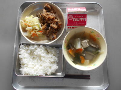 9月15日(金)、今日は、うどんについてのお話です。うどんは、奈良時代に、中国から伝わりました。作り方は、小麦粉を塩水でこねて、うすくのばして、細長く切ります。有名な郷土料理には、四国のさぬきうどん、名古屋のきしめん、山梨のほうとう、関東の鍋焼きうどんなどがあります。小麦粉と塩水で作っためんは、うどんのほかにもありますが、地域や太さによって呼び名がちがいます。うどんより少し細いのが「ひやむぎ」、ひやむぎより細いのが「そうめん」です。今日は、鶏肉、ちくわ、しいたけ、ごぼうやはくさい、にんじんなどの野菜も入った、具だくさんのごもくうどんです。