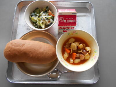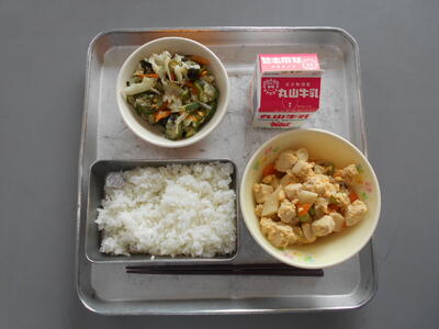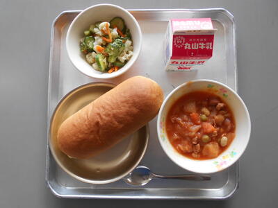 9月19日(火)、今日は、大豆についてのクイズです。大豆は畑の○〇と呼ばれますが、なんと呼ばれるでしょう。少し考えてみて下さい。・・・答えは、畑の肉です。肉と同じくらい栄養があるという意味ですが、肥満や生活習慣病予防のことを考えると、肉よりも優秀なくらいです。上手に食事に取り入れたい食材ですね。今日のチリコンカンには、栄養たっぷりの大豆が入っていますよ。