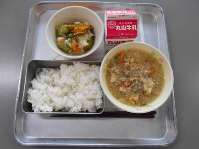9月20日(水)、今日は、わかめについてのお話です。わかめの特有のぬめりは、食物繊維の「アルギン酸」によるものです。余分なナトリウムを排泄して血圧の上昇を防ぐほか、コレステロールを低下させ、動脈硬化の予防に効果があります。昔からみそ汁には欠かせない食材として、日本人の長寿を支えてきたといわれています。今日の給食では、酢の物にしています。