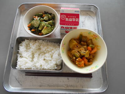 9月27日(水)、今日は、かぼちゃ、さつまいも、ごぼうなどの夏野菜が入った煮物です。ごぼうは、日本では古くから新陳代謝を良くする食べ物とされてきましたが、食物繊維のセルロースやリグニンという成分を豊富に含み、便秘の解消やコレステロール値の低下に役立つ健康食品として注目されています。さらに、腎臓機能を高める成分も含んでいます。しかし、世界の中でも、野菜として食べるのは、台湾と日本だけのようです。あくの強い野菜ですので、カットしたら水にさらして利用しますが、煮物に入れると、ごぼう独特の風味がして美味しいと思います。