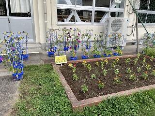 そして、他にも心が温かくなることがありました。あすなろ・ひまわり学級・1年生の花壇には素敵な花が植えてありました。これからの成長がとても楽しみになりました。また、1年生の花壇の向こう側には、子どもたちが大切に育てている「朝顔」もたくさんの花を咲かせています。