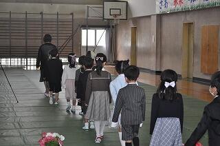 新入生64名が、学級担任の先生と一緒に入場してきました。