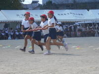 特に上級生の中には、リレーや団技の練習をしている子どもたちもいます。