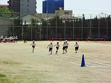 まずは1年生です。体育の時間は体力テストに向けた練習の真っ最中です。今日は50m走の練習をしていました。