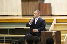 親方の紹介のあと、お話をしていただきました。これから親方として強い力士を育てていきたいとの力強い決意の言葉がありました。