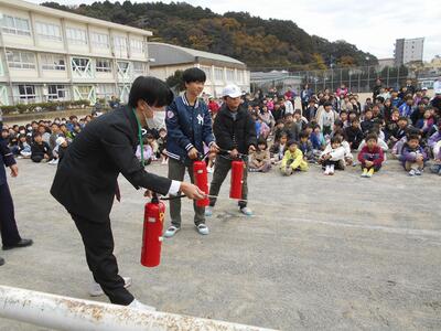 消防署から来ていただいた宮田さん、後藤さんのお二人には、「煙を避けるため横に逃げる」「口を覆う」などのポイントを教えていただいきました。また、職員の動き等についてもアドバイスをいただきました。これからも、自分で考え、臨機応変に対応できるように学習していきたいです。