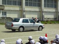 5月13日には、地元の延陵自動車学校による、学年部別「交通安全教室」を行いました。毎年ご協力いただいております。運動場に引かれた横断歩道や歩道コースを順番に歩き、丁寧にご指導いただきました。また、自動車と人形の衝突実験も見せていただき、その怖さを実感しました。