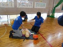 6月16日(月)はみんなが楽しみにしている「プール開き」です。水泳指導が始まりますので、それに備えて5月15日(木)に「救急救命法講習」を実施しました。指導は延岡消防本部警防課の吉岡さんお願いしました。