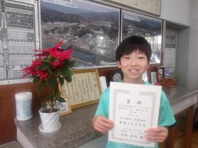 ★バドミントン 5年 井上泰佑さんが、5月18日に行われた市内のバドミントン大会ダブルス部門で優勝しました。決勝戦は接戦だったようですが、見事チームワークで優勝したそうです。ラビットに所属し、週に3回程度延岡小体育館で練習しています。今回の優勝でクラスがあがるのでがんばりたいと意気込んでいました。目標は全国大会です。がんばってください!
