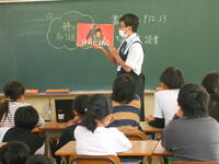 学校から野田(のた)町のしろやま支援学校まで、歩いて向かいました。まず、はじめの会で、交流会の流れを確認しました。