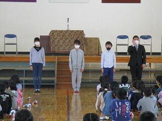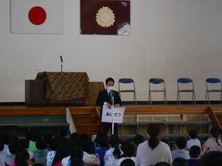 「一人ひとりが自分で考えて行動できるようになると、自分でも自分をはやく成長させることができます。」と校長先生が話されると、うなずく素直な子どもたちでした。
