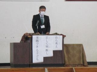 岡富小のみんなが「自ら考え 正しく判断し 実践できる子ども」にむかっていってほしいと話されました。