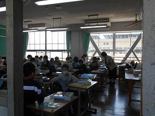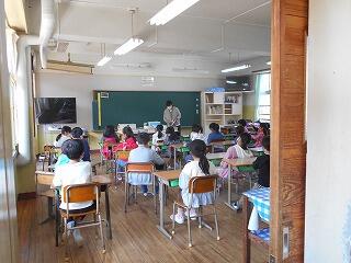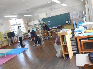 まず、緊急時の避難の約束等を各学級で行い、感染症対策として2・5年、3・4年がペアとなり、避難経路を確認しました。1・6年は月曜日の予定です。