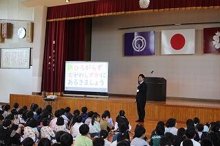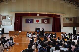 1~6年生の各教室で集中してお話を聞く姿が見られました。