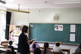 1~6年生の各教室で集中してお話を聞く姿が見られました。