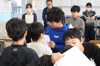 それぞれの考えや友達の考えを話し合いながら、グループの意見をまとめているところです。