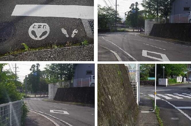 この横断歩道を利用するときは、マークの所まで来て、左側(西側)からも車が来ないこと、また止まってくれたことを確認してから渡るように学校でも指導しますので、ご家庭でもご指導よろしくお願いします。