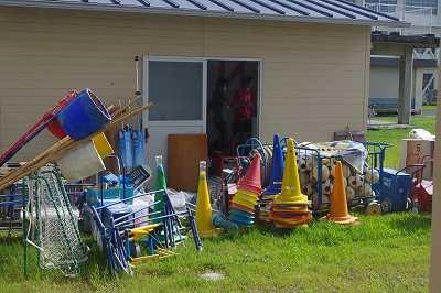 令和4年8月2日(火)、図書室の古い本の廃棄作業や図書の整理、体育倉庫の中の整理等を行いました。天気がよいので、玉入れのおじゃみの虫干しも行いましたよ。
