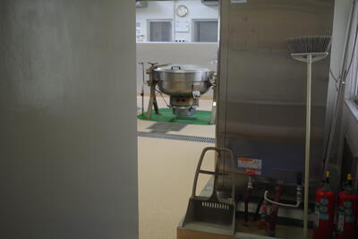 給食室の床を破損箇所を修繕し、全面貼り替えをしてもらいました。
