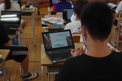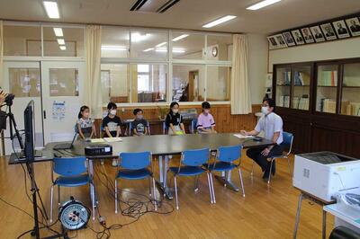 令和4年7月21日(木)の午後、6年生と宮崎南高校の生徒がオンラインで交流を行いました。