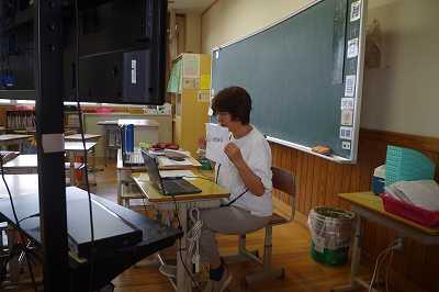 2年生は、ワイワイテレビのアナウンサーに来ていただいて、日本語の音の高さ、アクセントなどのことを教えていただきました。↓
