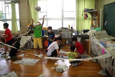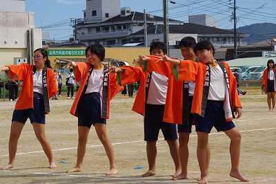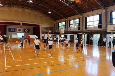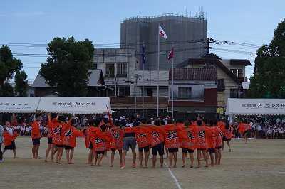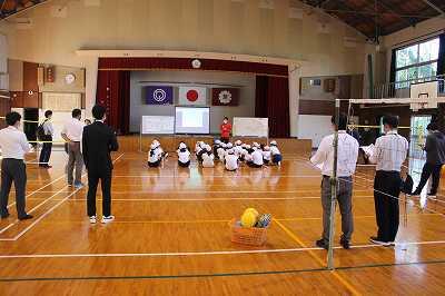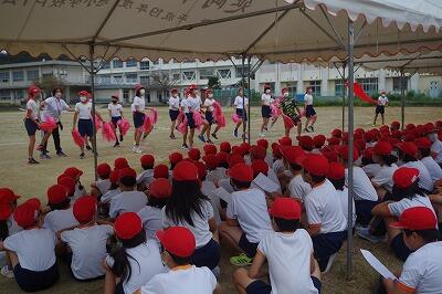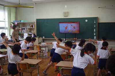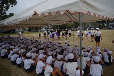 令和4年7月28日(木)、体育館で6年生が5年生に「新新ばんば踊り」を教えていました。運動会で5年生が毎年踊っているようです。6年生も、まだちゃんと覚えていて、上手に教えていました。