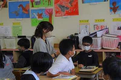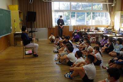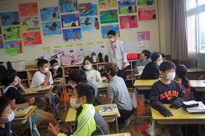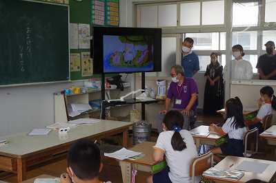 一緒に「ととろ三人の会」の方々の読み聞かせを聞いたり、各学級に入って一緒に学習したりしながら楽しく交流し、あっという間に時間が過ぎていきました。