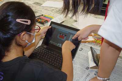 理科では、夏休み自由研究の発表が行われていました。音楽では、リコーダーの練習をしていました。写真の様に、タブレット上にリコーダーの指使いが動画で表示され、それを見ながら練習することもできるようです。