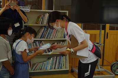 図書委員会の子どもたちの企画運営で、クイズに答えたり、くじ引きをしたり、好きなしおりをもらったりしながら、図書に関する興味関心を高めていました。