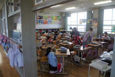①5日(月)は、全学年5時間授業とし、3年生以上も14:30ぐらいに下校します。(元々は3~6年は6時間授業の予定でした。)