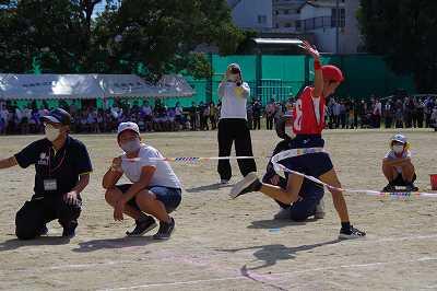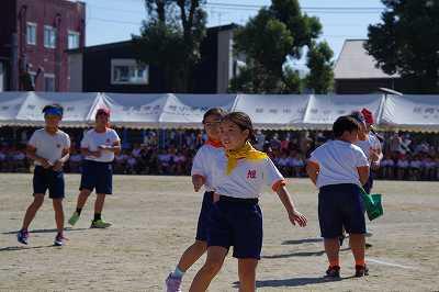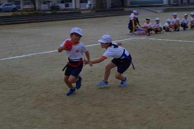 2学期が始まって数日、体育では運動会に向けて、少しずつ「かけっこ」になれていく取り組みをしています。夏休み明けに、急に全力で走ると怪我や熱中症が怖いですので、軽く流して走ったり回数を減らしたりしています。