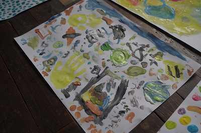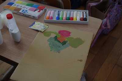 1年生や4年生は、図工でそれぞれに個性的なリースを作っていました。↓