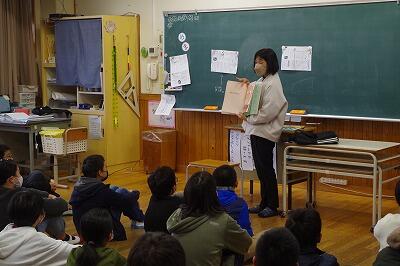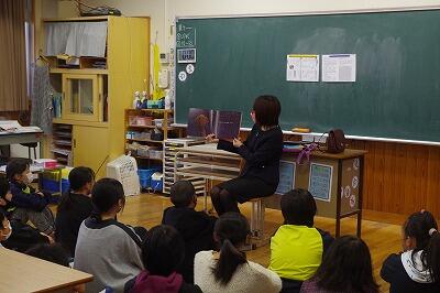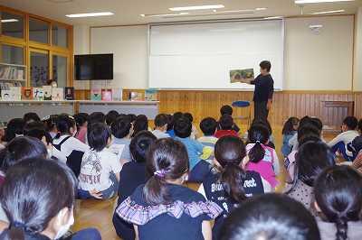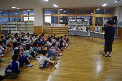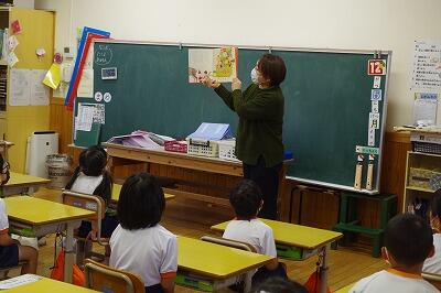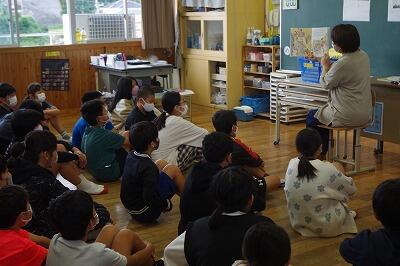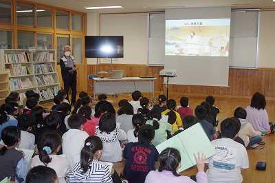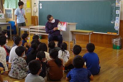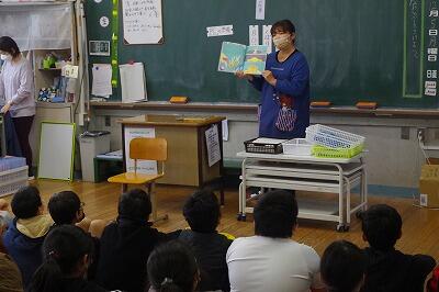 令和4年11月14日~15日の2日間、1年生から6年生まで、計6回、「ととろ三人の会」の方々による絵本の読み聞かせ等を行っていただきました。どの学年の子どもたちも、お話の中に引き込まれている表情でした。