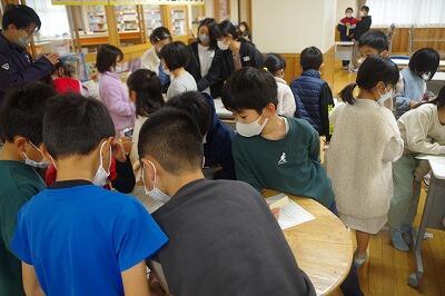令和4年11月15日(火)、熊野江小と浦城小の児童が旭小に来てくれて合同学習を行いました。