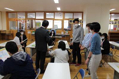 先生方がいくつかのグループに分かれて旭小の校区を見て回り、旭小のみなさんは元気に過ごしているか、危険なところはないかなどの確認をしました。