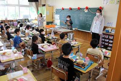 そして、給食の日向夏風味サラダには、星形のチーズが入っていました。デザートに七夕ゼリーもついていて子どもたちは大喜び。